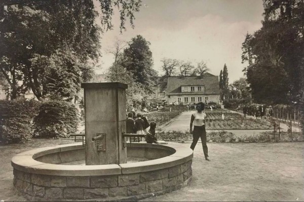 Als ich den Brunnen im "Café am Kleistpark" fotografiert habe, sprch mich ein Kellner des Lokals an und sagte mir, das im Haus noch ein Bild vom ehemaligen Brunnen aushinge. Ich frahte nach, ob ich es abfotografieren dürfe und es auch dann verwenden darf. Es wurde mir die Zustimmung gegeben. Also hier nun das Bild des Brunnens.