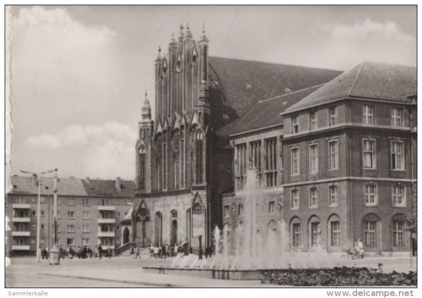 Vor der Schule, in der Nähe des Rathauses befand sich ein recht großer Brunnen. Leider ist er in der Phase der Umgestaltung des Platzes verloren gegangangen. Viele Schüler die dort eingeschult wurden und einige Jahre dort lernten, werden sich noch daran erinnern. An sonsten bleibt nur die Erinnerung an Hand von Fototgrafien oder Postkarten aus dieser Zeit. Hier einige Beispiele:
