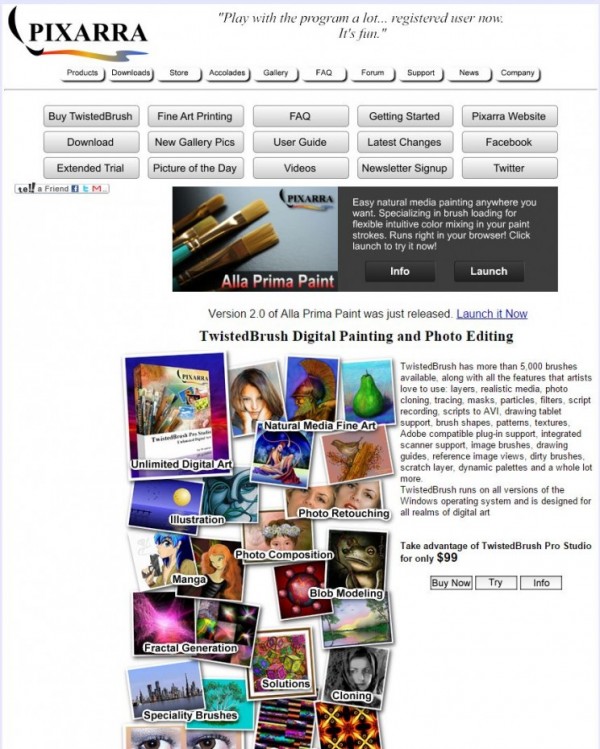 Es gibt noch eine weitere Programmversion, aber diese ist kostenpflichtig, ebenso die Zusätze und weitere Pinsel. Zu finden ist diese Version auf der Internetseite (http://www.pixarra.com)