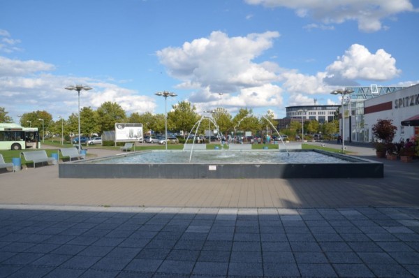 Auf der Nordseite des Spitzkrug Multi Centers befindet sich ein 11 x 11 Meter großer Springbrunnen mit drei Fontänen.