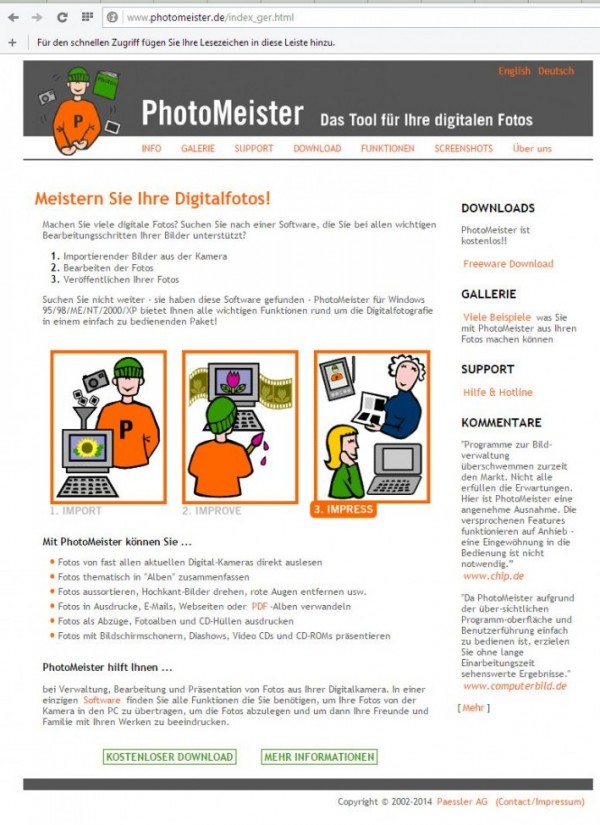 Bildschirmfoto von der Internetseite der Programm-Hersteller